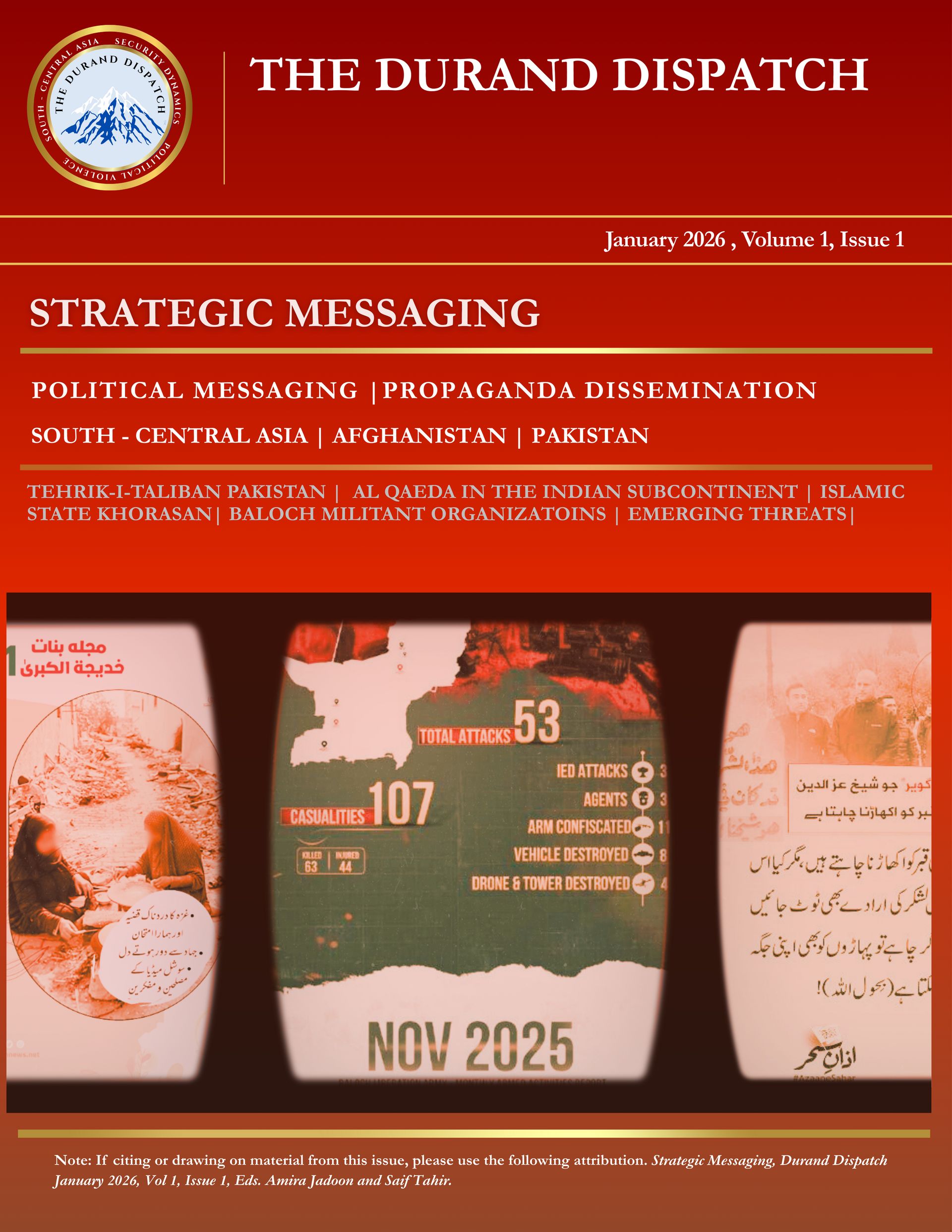 Welcome to the January 2026 issue of the Durand Dispatch: Strategic Messaging, our monthly publication that examines how non-state actors across the Afghanistan–Pakistan region shape perceptions, frame legitimacy, and assert influence through media and narrative construction. This analysis complements our Durand Dispatch: Perspectives Series, which covers a wider range of topics including militancy, Afghanistan-Pakistan relations, and security dynamics across South/Central Asia. Together, the two provide a fuller understanding of how strategic messaging intersects with on-the-ground dynamics.