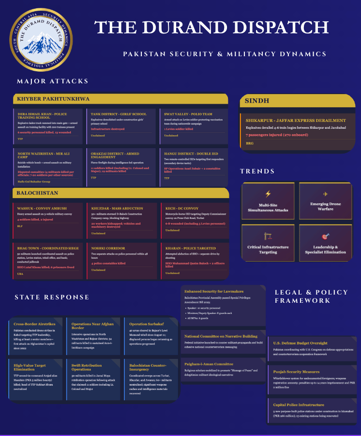 October/November 2025 marked a period of intensified border hostilities between Pakistan and Afghanistan, raising questions about Washington's regional influence and strategic priorities. While the United States maintained diplomatic engagement with both Islamabad and Kabul through separate channels—including ongoing negotiations over American detainees and expanding economic partnerships—its role in mediating the immediate crisis remained limited. Regional actors including Qatar, Turkey, and Saudi Arabia assumed primary responsibility for brokering ceasefires, highlighting the evolving landscape of South Asian security dynamics. Concurrently, the Trump administration's domestic immigration enforcement policies intersected with its foreign policy commitments, as Afghan allies who had served U.S. forces faced detention despite lacking criminal charges. October also witnessed the operationalization of the U.S.-Pakistan critical minerals partnership, with the first shipment of rare earth elements, underscoring Washington's strategic pivot toward economic engagement with Islamabad.